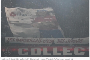 這一被篡改但具有冒犯性的巨幅橫幅影響惡劣。專營(yíng)包裹運(yùn)輸與配送業(yè)務(wù)(隸屬于法國(guó)郵政集團(tuán))的DPD公司本周一發(fā)布公告,表示遺憾其“公司標(biāo)識(shí)被篡改,并用于傳達(dá)具有攻擊性且違背其所捍衛(wèi)的價(jià)值觀的信息”。這是在巴黎圣日耳曼隊(duì)與馬賽隊(duì)比賽(5比0)次日作出的明確回應(yīng)。比賽中,巴黎球迷展示了一幅巨幅橫幅,上面寫著“DPD”和“馬賽人就是送貨員”。