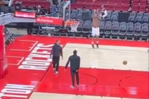 賽后,他獨(dú)自在火箭主場進(jìn)行加練。