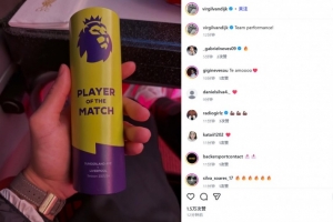范戴克也在賽后通過社媒曬出英超官方的全場MVP獎杯,并配文:“團隊表現(xiàn)!”