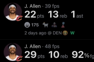 此役,賈勒特·阿倫投籃8投8中,6罰5中,得21分9板1助2蓋帽。正負(fù)值+25是全隊(duì)最高。