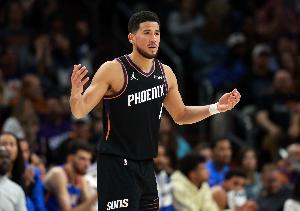 上半場,太陽后衛(wèi)布克表現(xiàn)不理想,出場19分鐘9投僅3中,三分1中0、罰球7中7拿到13分2籃板4助攻,有2失誤,正負(fù)值-11。