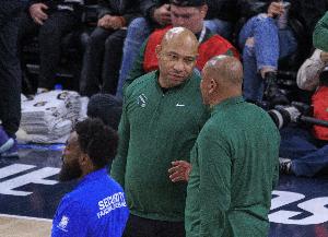 賽前接受采訪時(shí),雄鹿替補(bǔ)教練哈姆透露球隊(duì)主帥道格·里弗斯因參加葬禮而缺席本場(chǎng)比賽,自己將在本場(chǎng)比賽擔(dān)任雄鹿臨時(shí)的主教練。。