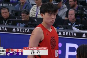 這球裁判吹科迪威犯規(guī),爵士挑戰(zhàn),挑戰(zhàn)成功!改成森薩博犯規(guī),楊瀚森依舊獲得兩罰!并且兩罰全中。