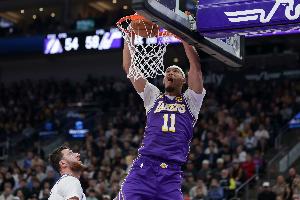 本場(chǎng)比賽,湖人中鋒海斯高效終結(jié),出場(chǎng)33分鐘10投8中,拿到16分7籃板4助攻3搶斷1蓋帽,正負(fù)值+26最高。