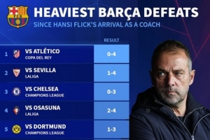 弗里克時(shí)代巴薩最大比分輸球:0-4馬競(jìng)創(chuàng)紀(jì)錄,僅5場(chǎng)凈負(fù)至少2球