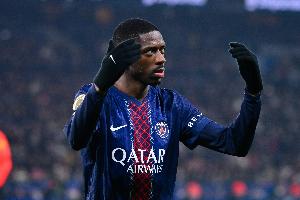 體育資訊2月14日訊 2025-26賽季法甲聯(lián)賽第22輪,巴黎圣日耳曼客戰(zhàn)雷恩,下半場(chǎng)登貝萊頭球破門(mén)。