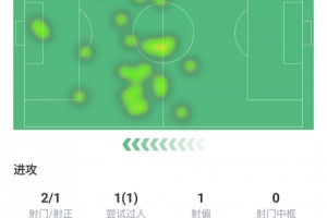 首發(fā)出場72分鐘,打進(jìn)1球,射門2次射正1次,過人1次,射偏1次,丟失球權(quán)6次,預(yù)期進(jìn)球0.57球