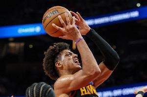 老鷹球員杰倫·約翰遜本場比賽手感不佳,三分線外更是頻頻打鐵,未能幫助扭轉(zhuǎn)局面。