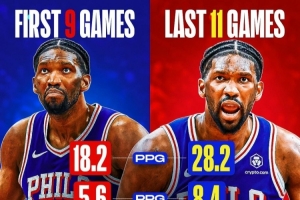 而近11場出場的比賽,場均28.2.分8.4籃板3.5助攻,投籃命中率51.5%,真實(shí)命中率61.6%。