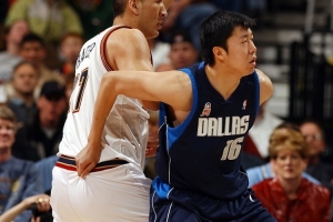 2001-02賽季王治郅為獨(dú)行俠出戰(zhàn)了55場(chǎng)比賽,場(chǎng)均10.8分鐘得到5.6分,三分命中率41.4%。