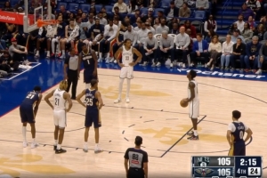 GIF-最后2分鐘打平,錫安對德雷克·鮑威爾三分犯規(guī)3罰2中