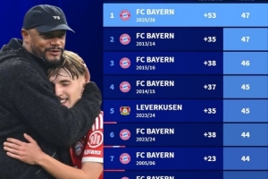 體育資訊1月15日訊 德轉統(tǒng)計表明,孔帕尼帶領拜仁上半賽季的成績創(chuàng)造了德甲歷史。