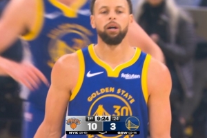 GIF-庫里傳球直接傳出界外