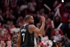 此役,杜蘭特出戰(zhàn)36分鐘,23投7中,三分5投0中,罰球5罰5中,得到19分7籃板3助攻3搶斷1蓋帽。