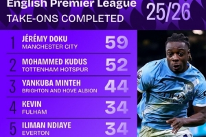 本賽季英超成功過人榜: