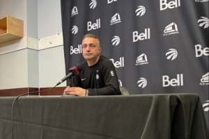 賽后,猛龍主教練拉賈科維奇被問及球隊最后時刻得分困難的話題,他說:“我認為對手有太多非法拉拽和抱人動作。”