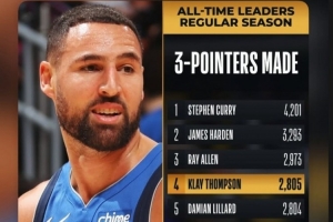 克萊的生涯三分球命中數(shù)超越利拉德,上升至NBA歷史第四位;今天,庫里轉(zhuǎn)發(fā)評(píng)論道:“耶,殺手!”