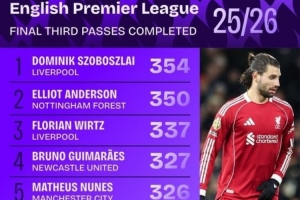 體育資訊1月10日訊 數(shù)據(jù)機構(gòu)squawka統(tǒng)計了本賽季英超在進攻三區(qū)的成功傳球次數(shù)情況,索博斯洛伊壓安德森居首。