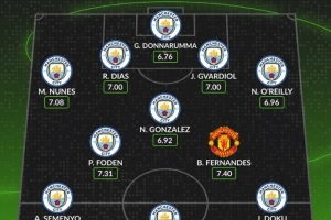 體育資訊1月17日訊 本輪英超曼市德比即將打響,數(shù)據(jù)網(wǎng)站W(wǎng)hoscored也盤點(diǎn)了兩支球隊(duì)本賽季英超場(chǎng)均評(píng)分最高陣容,其中曼城10人入選,具體如下: