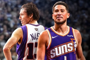 布克開場得到2分,他的生涯總得分來到17388分,超越隊(duì)史名宿史蒂夫·納什,上升至NBA歷史第97位,他再得10分將超越武切維奇。