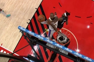 戈貝爾上半場(chǎng)10中4拿到8分狂攬14個(gè)籃板 7個(gè)前板一大半是刷的