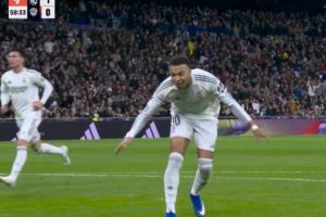 體育資訊01月18日訊 西甲第20輪,皇馬主場2-0擊敗萊萬特。姆巴佩在點射首開記錄后,當面嘲諷對方門將馬修·瑞安的撲救動作。