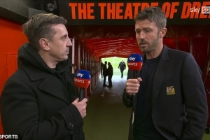 卡里克在德比前的新聞發(fā)布會上對羅伊·基恩的評論一笑了之,但據(jù)了解,曼聯(lián)官方果斷拒絕了天空體育的采訪請求,而這完全可以理解。最終,改由加里·內(nèi)維爾去采訪前隊友卡里克。