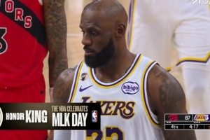 湖人VS猛龍第四節(jié),詹姆斯隔扣造成犯規(guī)走上罰球線,主場(chǎng)球迷喊起MVP的呼聲。