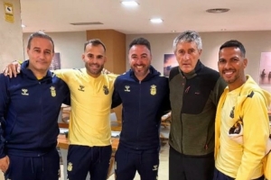 本輪西乙聯賽,拉斯帕爾馬斯1-4不敵桑坦德競技暫列積分榜第三位,前國安主帥塞蒂恩受邀現場觀戰(zhàn),他還與拉斯帕爾馬斯球員赫塞、比埃拉等人合影留念。