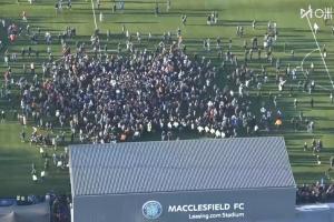 賽后第一時(shí)間麥克爾斯菲爾德球迷涌入場內(nèi),瘋狂慶祝。